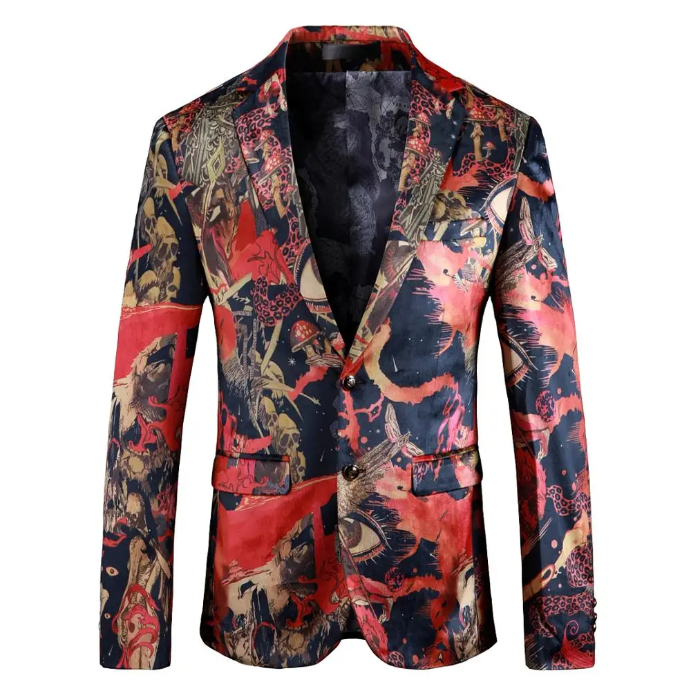 PAULKONTE 2019 New Print Trend Fashion Blazer Slim Casual Party Entertainment Suit Single Piece Hig