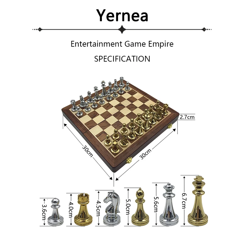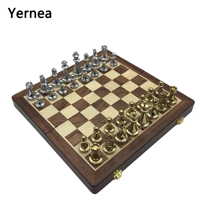 New Wooden Folding Chessboard Retro Metal Alloy Chess Pieces Chess Game Set High Quality Chessboard