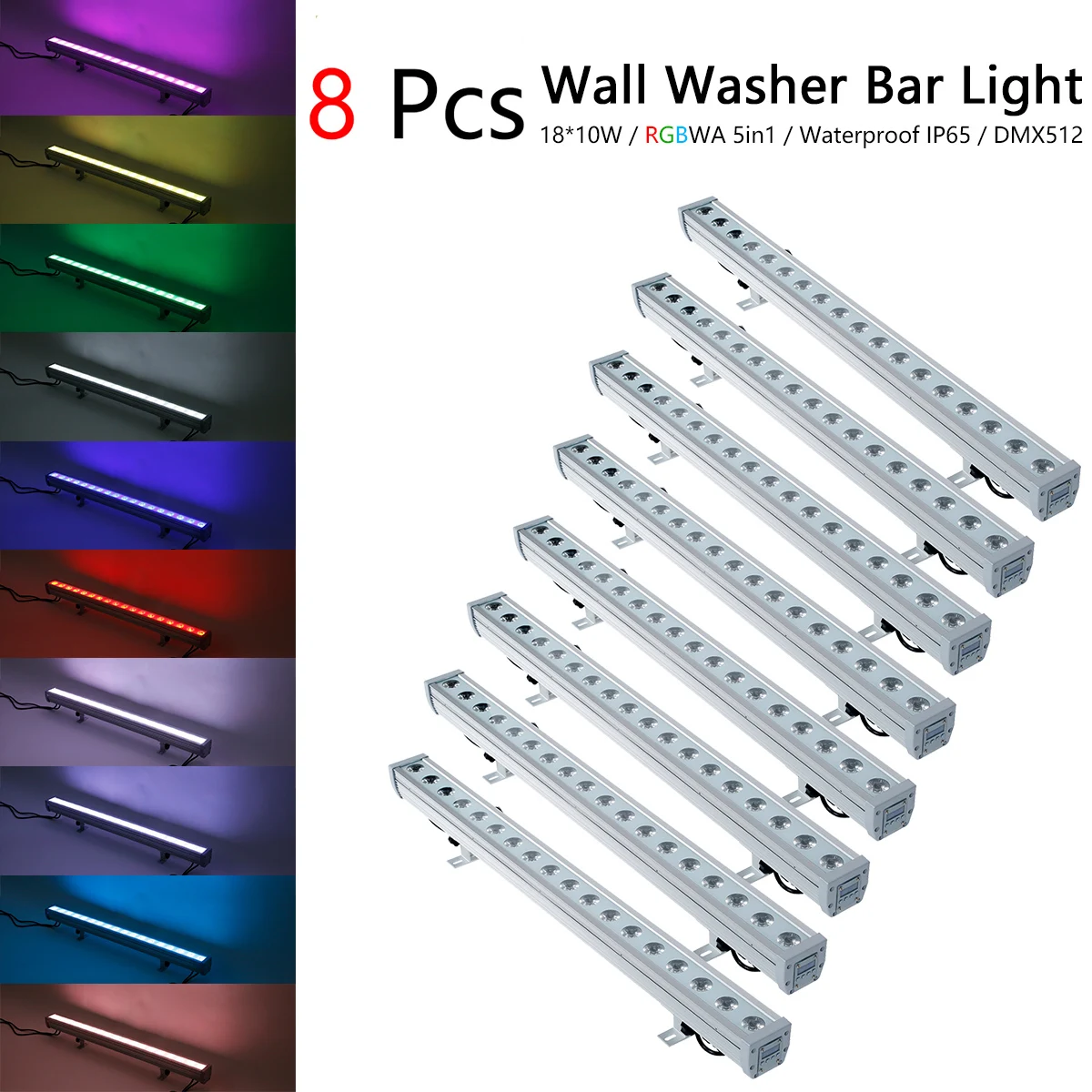 Review 8PCS 18x10W LED Wall Washer 5in1 RGBWA Bar Light IP65 Waterproof DMX US SHIP